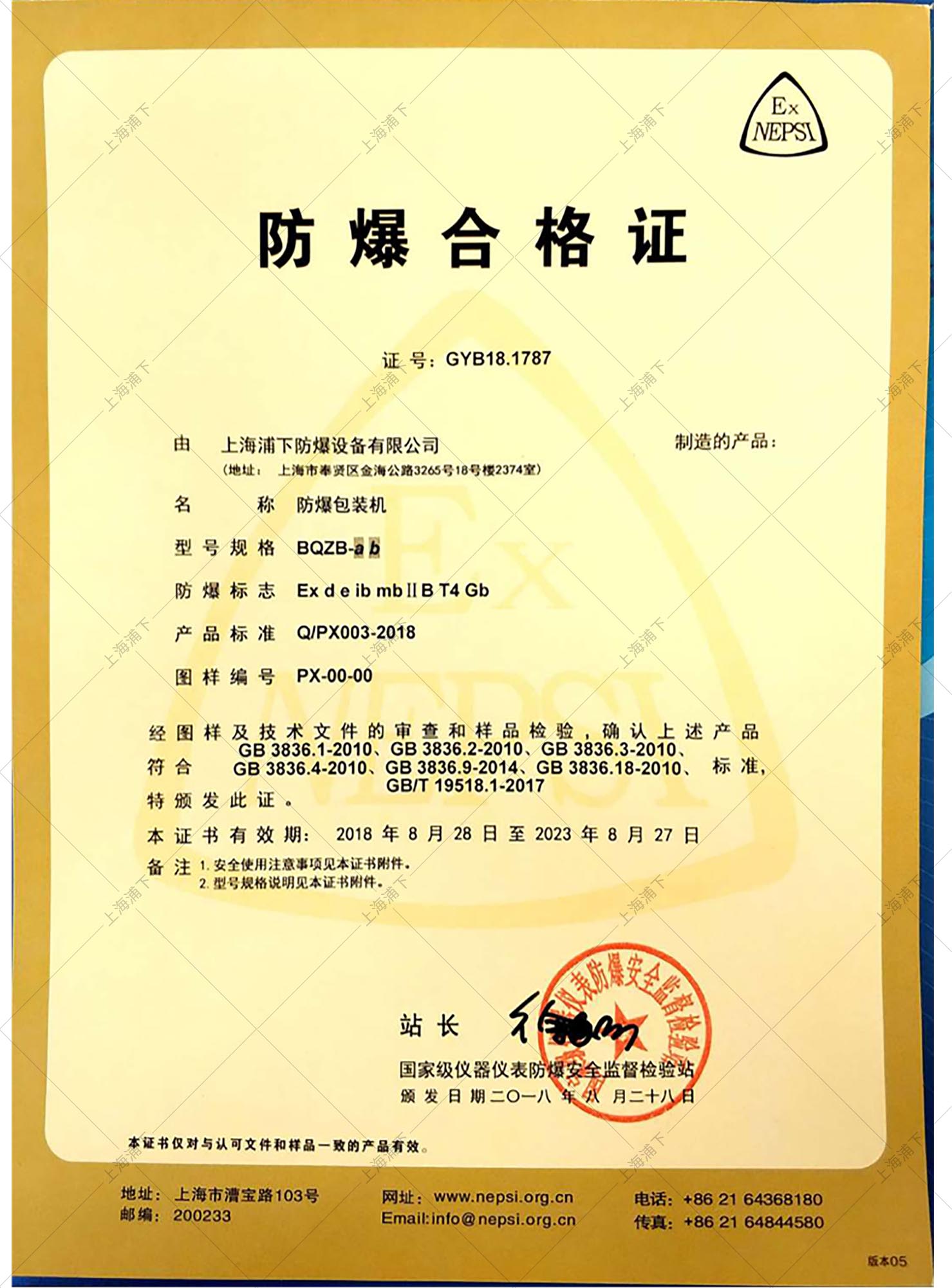 防爆立式包裝機適用于化工、醫藥、制藥、民爆、實驗室航天航空等領域中易燃、易爆物品的包裝封口、儲存??墒褂糜诖嬖趶娏覛怏w混合物IIA~IIB級環境,有溫度控制要求的場所